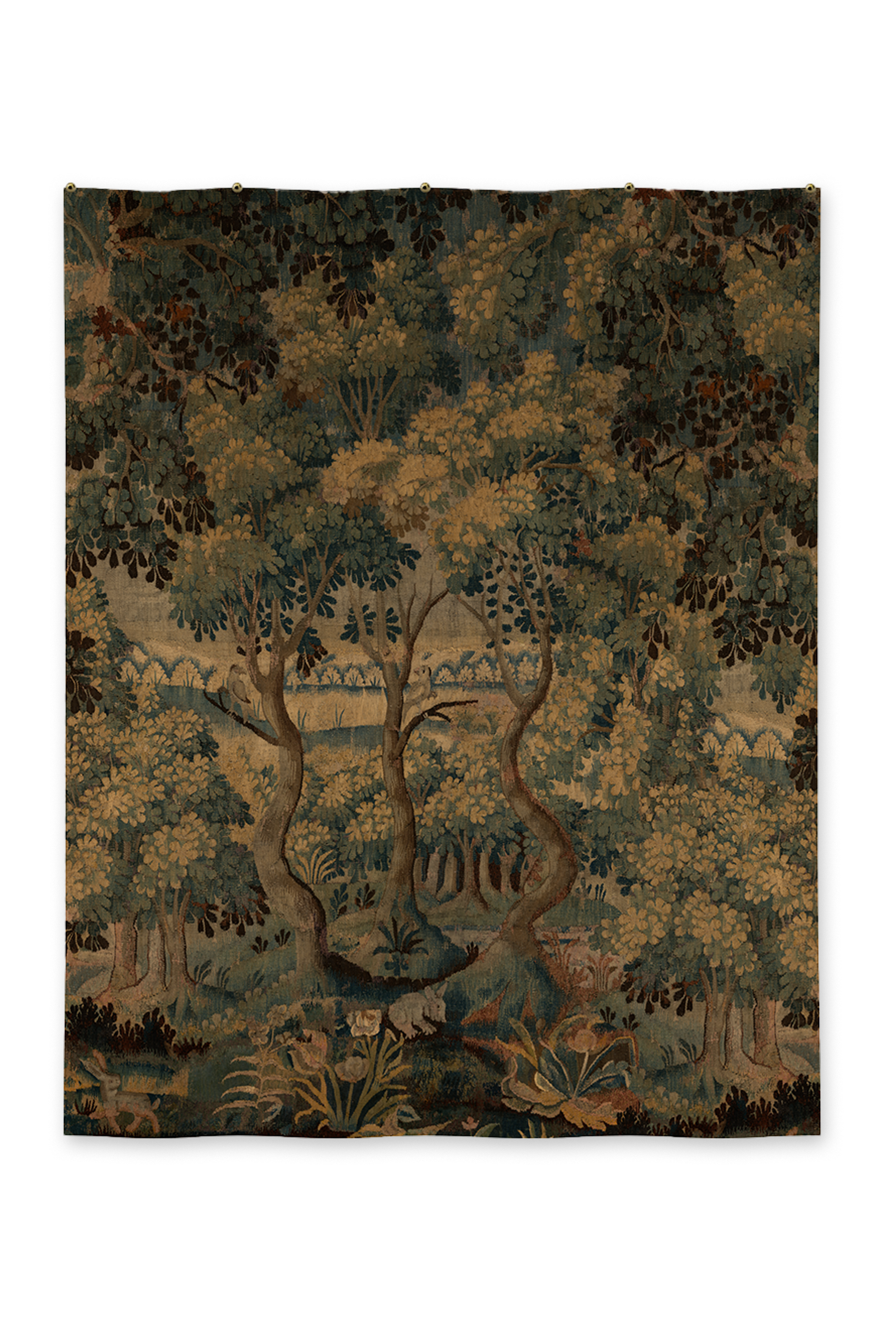 Enhance your interior with the refined elegance of the Verdure III Tapestry, an exclusive custom tapestry that reinterprets the grandeur of 17th-century verdure tapestries for modern spaces. This La Fae exclusive print showcases a lush landscape, dense foliage, and intricate botanical motifs, rendered in deep, warm greens and muted earth tones to achieve a sophisticated and historically inspired aesthetic.