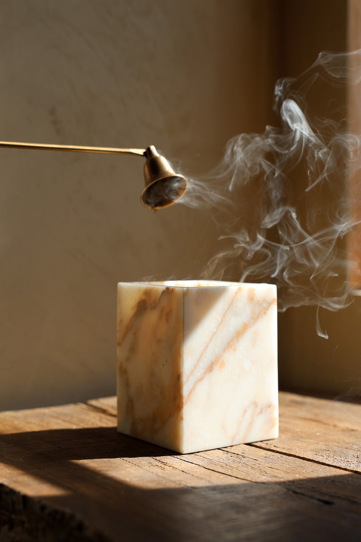 Crafted from marble, each vessel is a one-of-a-kind piece showcasing natural veining and timeless beauty. Designed to elevate both scent and setting, these candles combine the weight and cool elegance of stone with warm, atmospheric light.